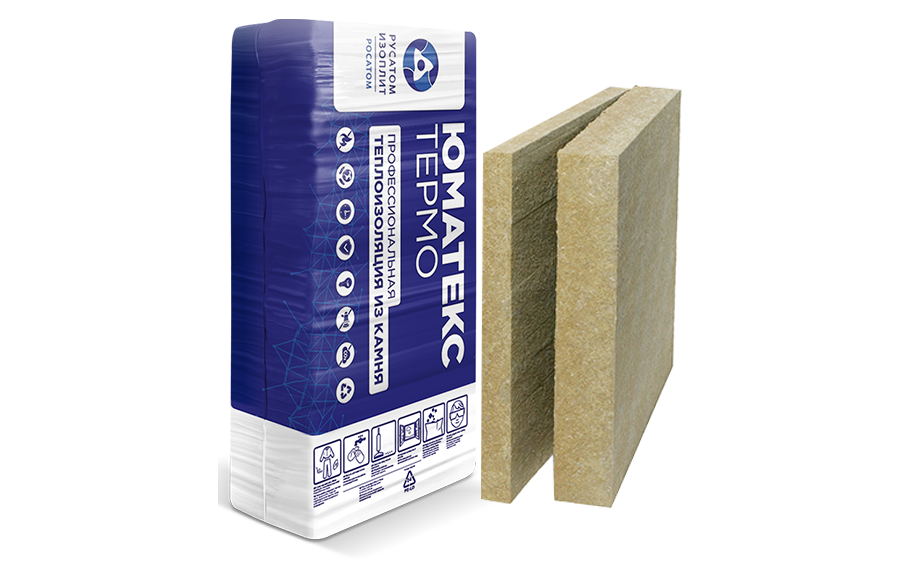ЮМАТЕКС ТЕРМО – негорючая каменная вата с покрытием из стеклохолста белого цвета. Применяется в качестве несущего нагрузку теплоизоляционного слоя для плоских кровель в процессе реконструкции старых и строительства новых зданий. Пригодна для больших несущих нагрузок.